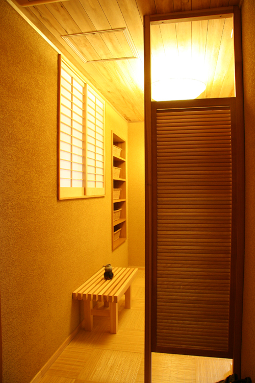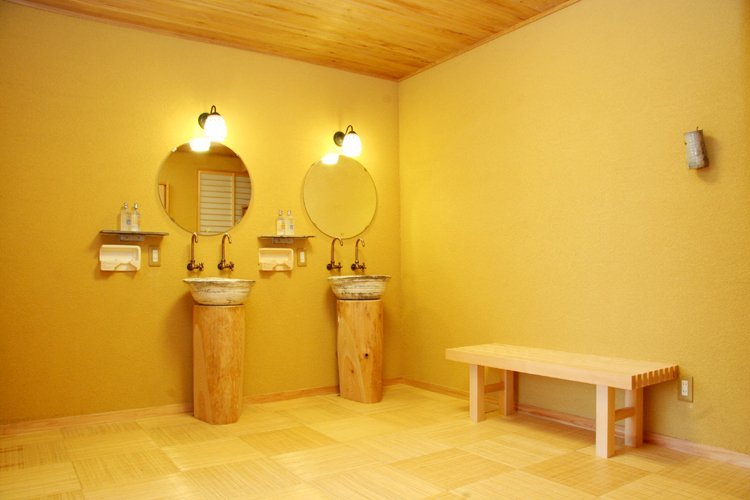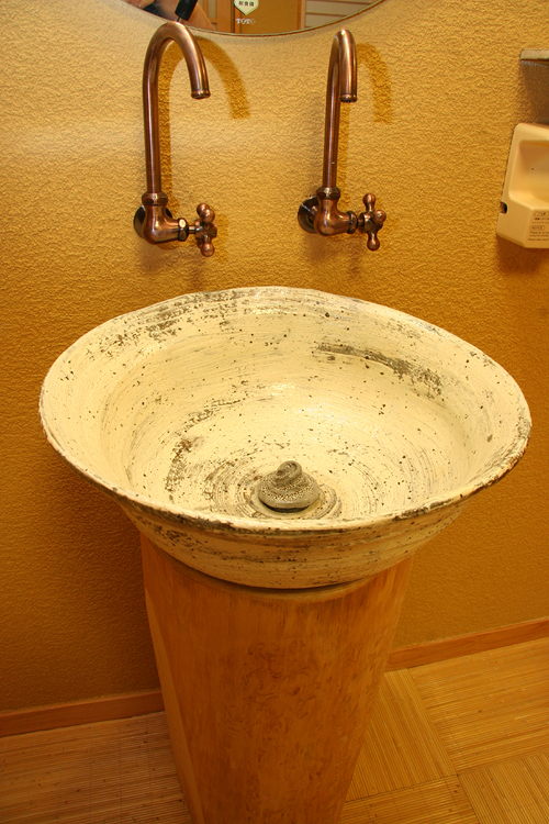 敬善坊窯・中里鉄也作の器を洗面台に利用した唐津ならではのお風呂で、浴室は石風呂になっており、旅の疲れを心身供に癒してくれるお風呂です。 石風呂の風情を楽しみながら、旅の疲れを心身供にお癒しください。